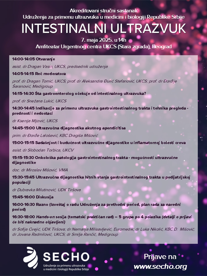 14:30-14:45 Indikacije za primenu ultrazvuka gastrointestinalnog trakta i tehnika pregleda -prednosti i nedostaci